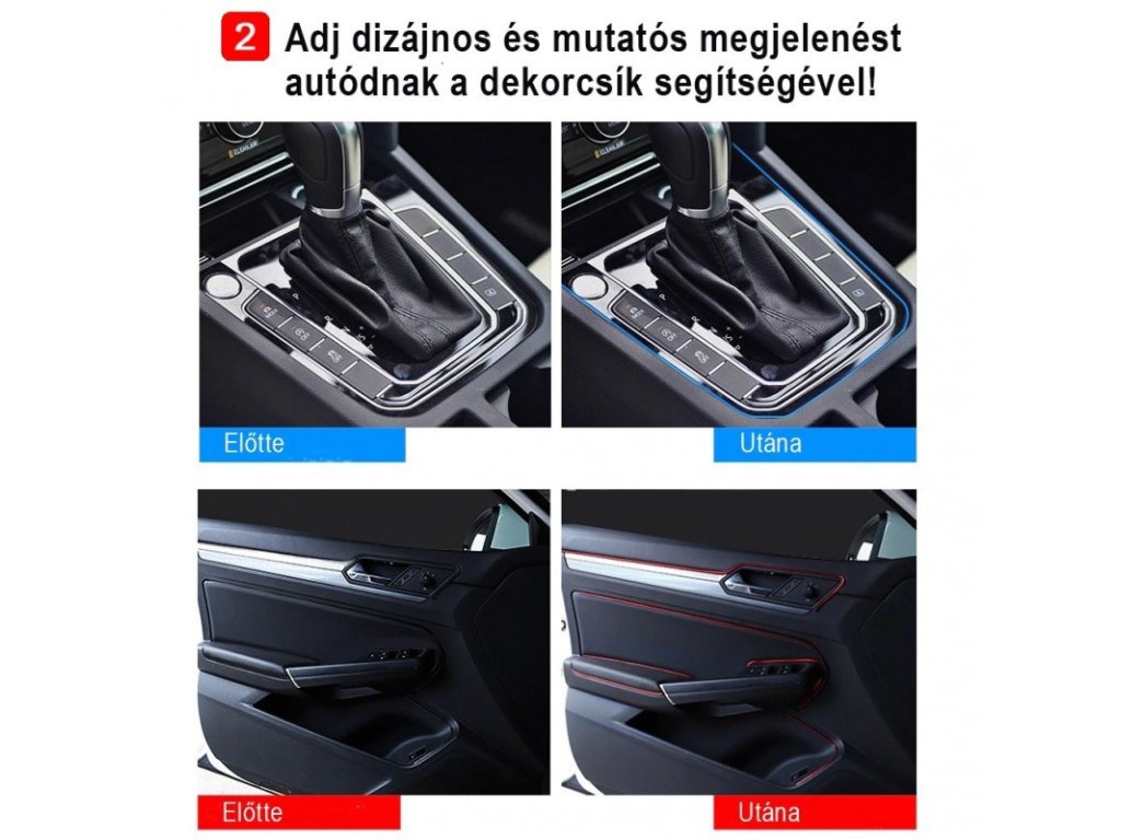 Segítségével könnyedén dekorálhatod kocsid műszerfalát vagy ajtajait. Nem kell mást tenned, csak kitöltened a hézagokat a dekorcsíkkal, amellyel nemcsak új és esztétikus kinézetet varázsolhatsz járművednek, de még ki is zárhatod a réseken bejövő porszemeket.