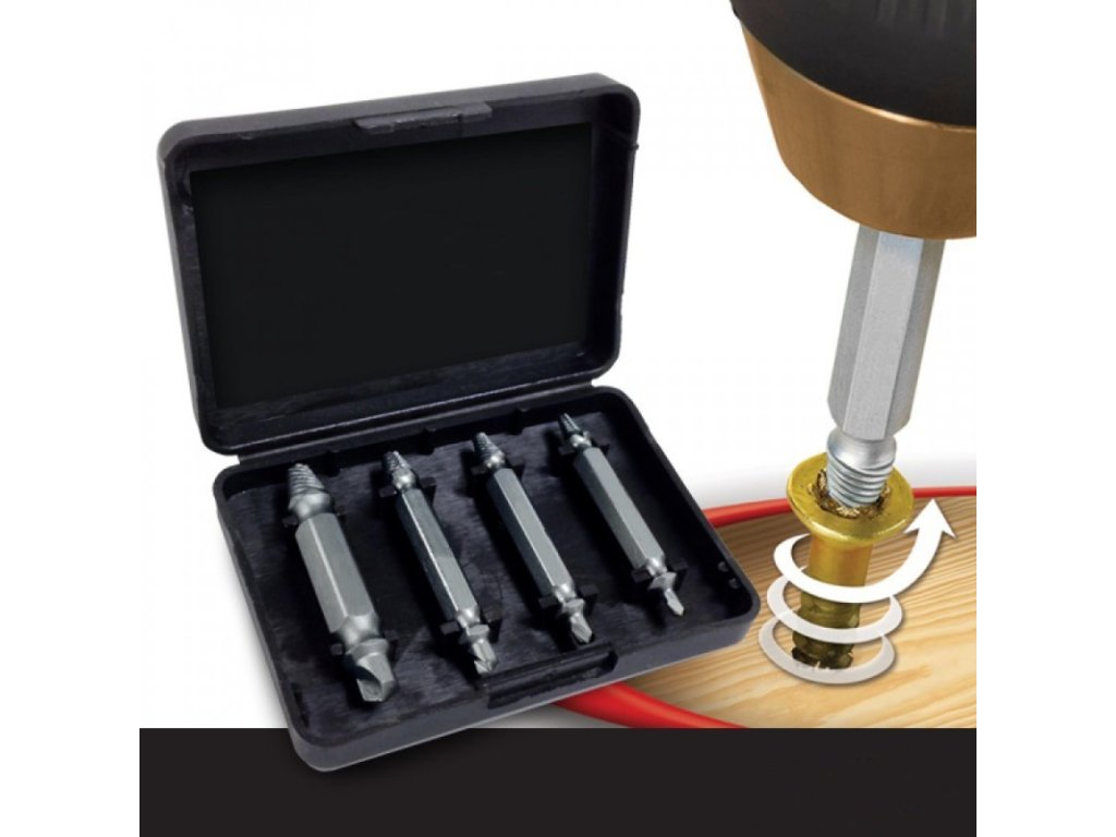 A tört csavar kiszedő segítségével akár kevesebb, mint fél perc alatt el tudod távolítani a legsérültebb csavarokat is. A készlet 4 darab csavarkiszedő szerszámból áll és szinte minden csavarozóval vagy fúrógéppel használhatóak. Bármilyen méretű és formájú csavarnál kiválóan alkalmazhatod. Csak meg kell fúrnod a sérült területet az eszköz fúró végével és a kiemelő végével egyenletesen kicsavarni.